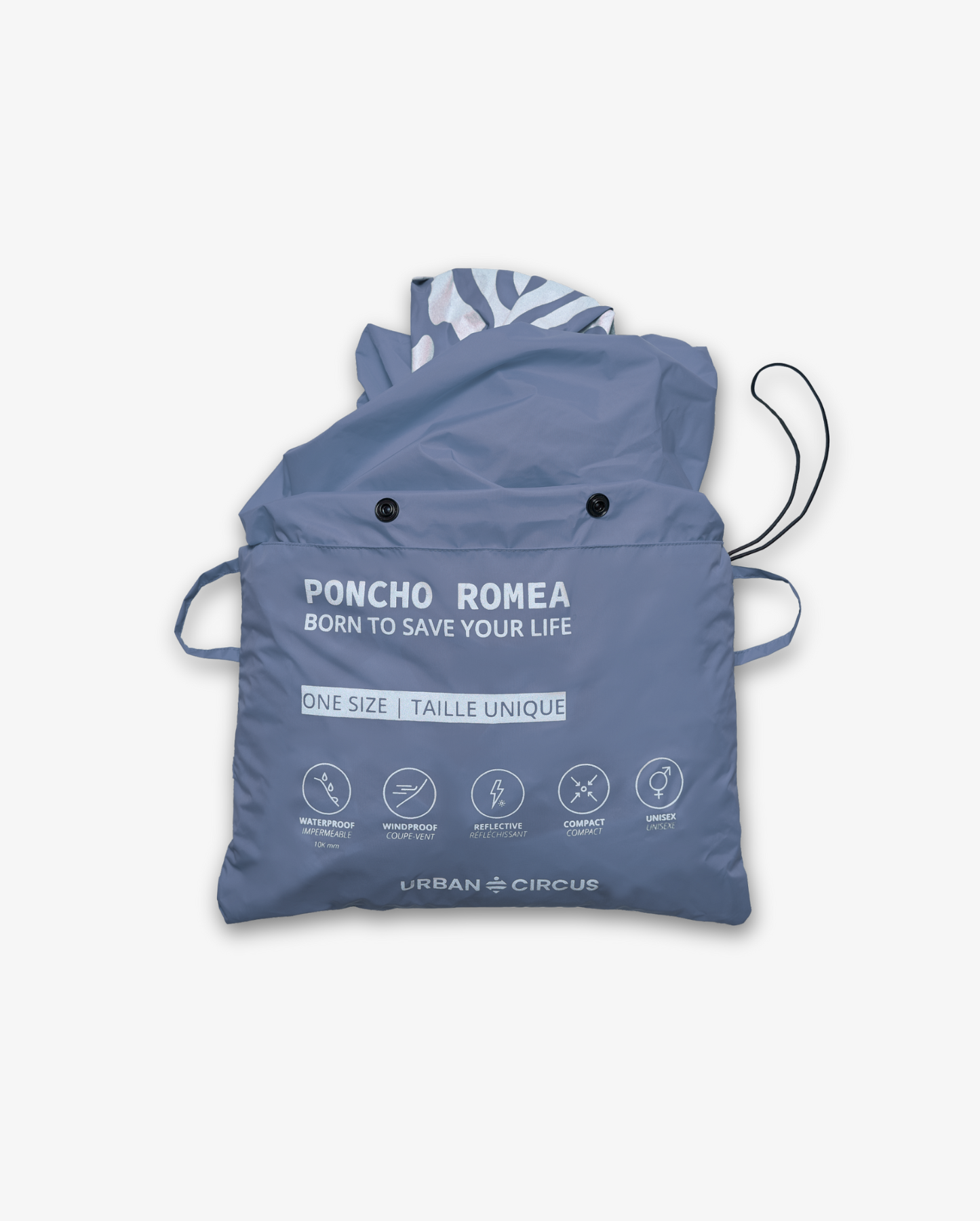 - Abmessungen des zusammengefalteten Ponchos : 27 x 19 x 7 cm (L x H x T)