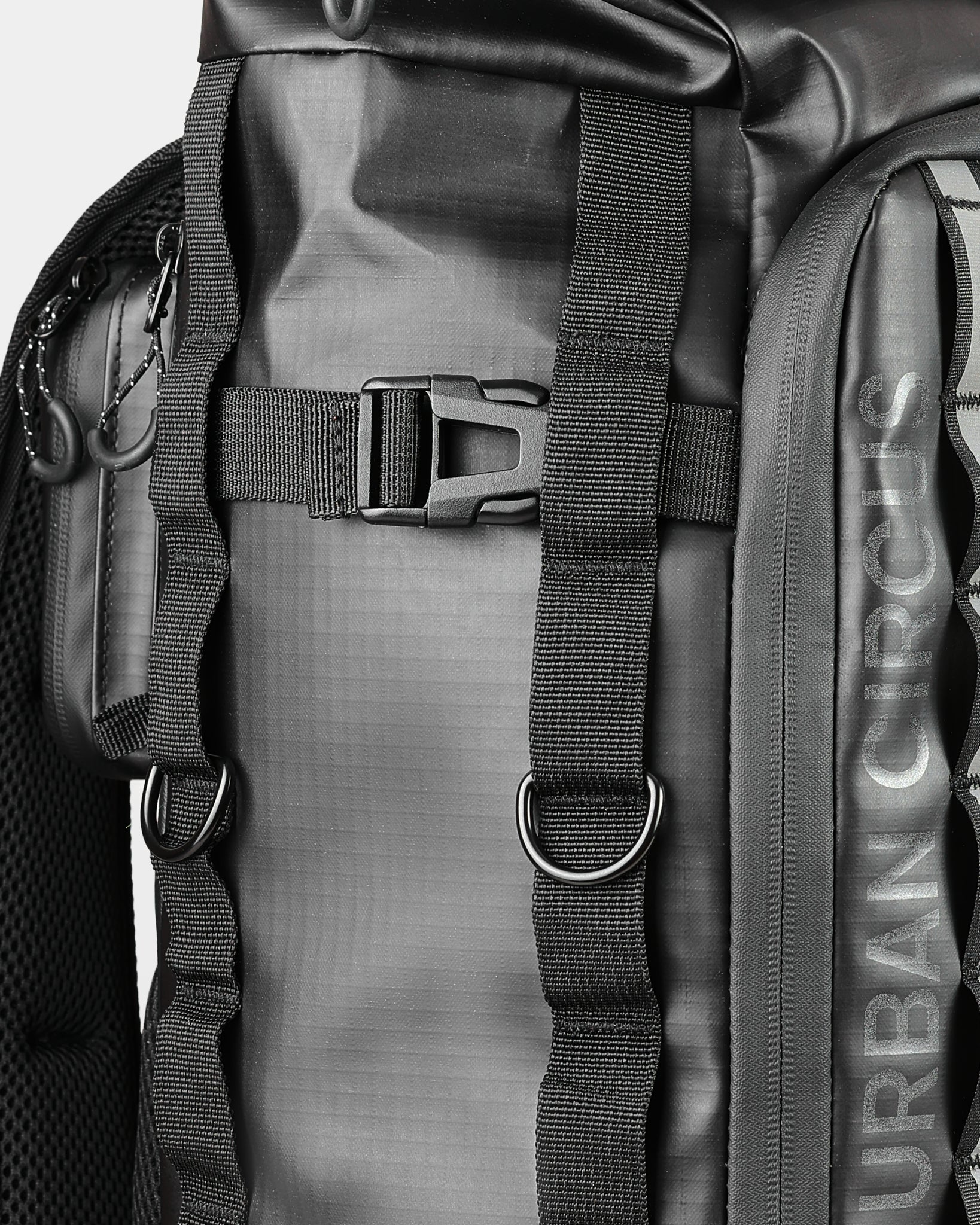 Organisation: "Full-Zip"-Öffnung, PC-Fach, Netztaschen.